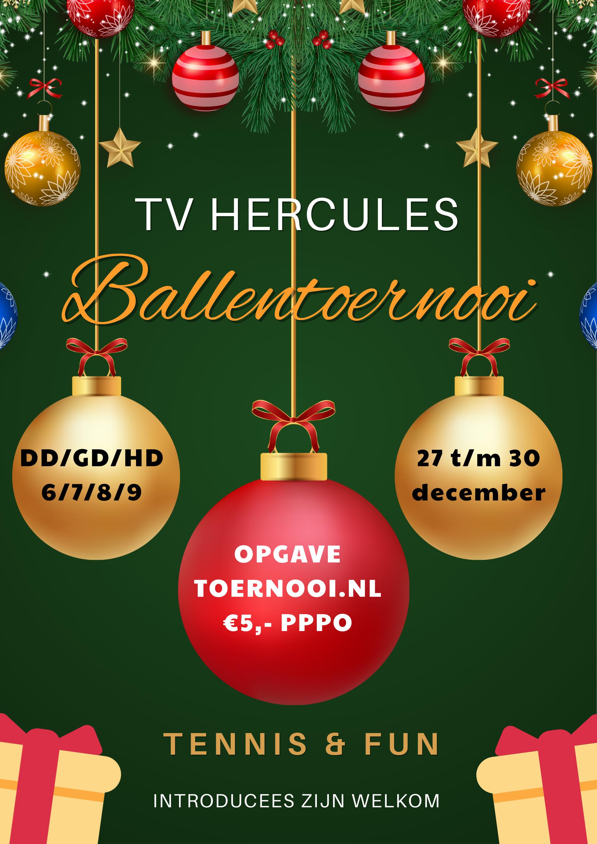 Tussen Kerst en Oud en Nieuw organiseert TV Hercules voor de vierde keer het jaarlijkse Ballentoernooi. Een altijd weer gezellig jaarlijks terugkerend toernooi. Zijn jullie er dit jaar ook weer bij?