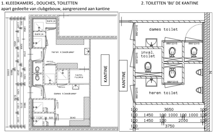 - Toiletten, voorraadhok en bestuurskamer: De toiletgroep in het clubhuis wordt vernieuwd. Het voorraadhok wordt verplaatst naar de eerdere bestuurskamer. En er komt een doorgang vanuit het voorraadhok naar het voorraadhok aan de straatkant.